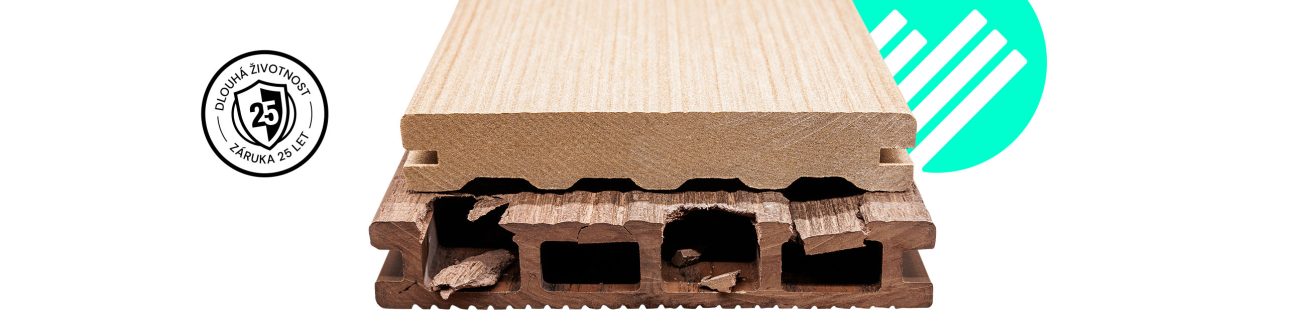 Používáme moučku z měkkého dřeva, které pochází udržitelných evropských lesů. Tato surovina dává v kombinaci s polymerem nejlepší vlastnosti WPC kompozitu. Důležitá je velikost a tvar vlákna a čistota moučky. Ve světe se také při výrobě WPC kompozitu používají drcené slupky z rýže nebo obilí případně moučka z bambusu nebo papíru.